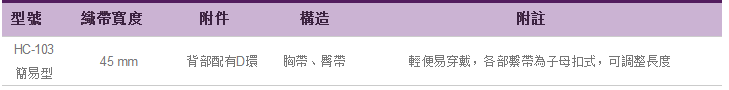 背部配有D環,輕便易穿戴,各部系帶為子母扣式,可調整長度。