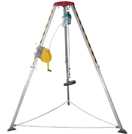救援三腳架加裝防墜器的目的就是為救援人員加裝二次保護,以防止絞盤的牽引繩發生斷裂而失去任何保護,有了防墜器,在救援的過程中,即便是牽引繩發生斷裂,防墜器也可以在瞬間做出反應,完成自鎖,從而保全救援人員的安全,也保證了受困者不受到二次傷害。