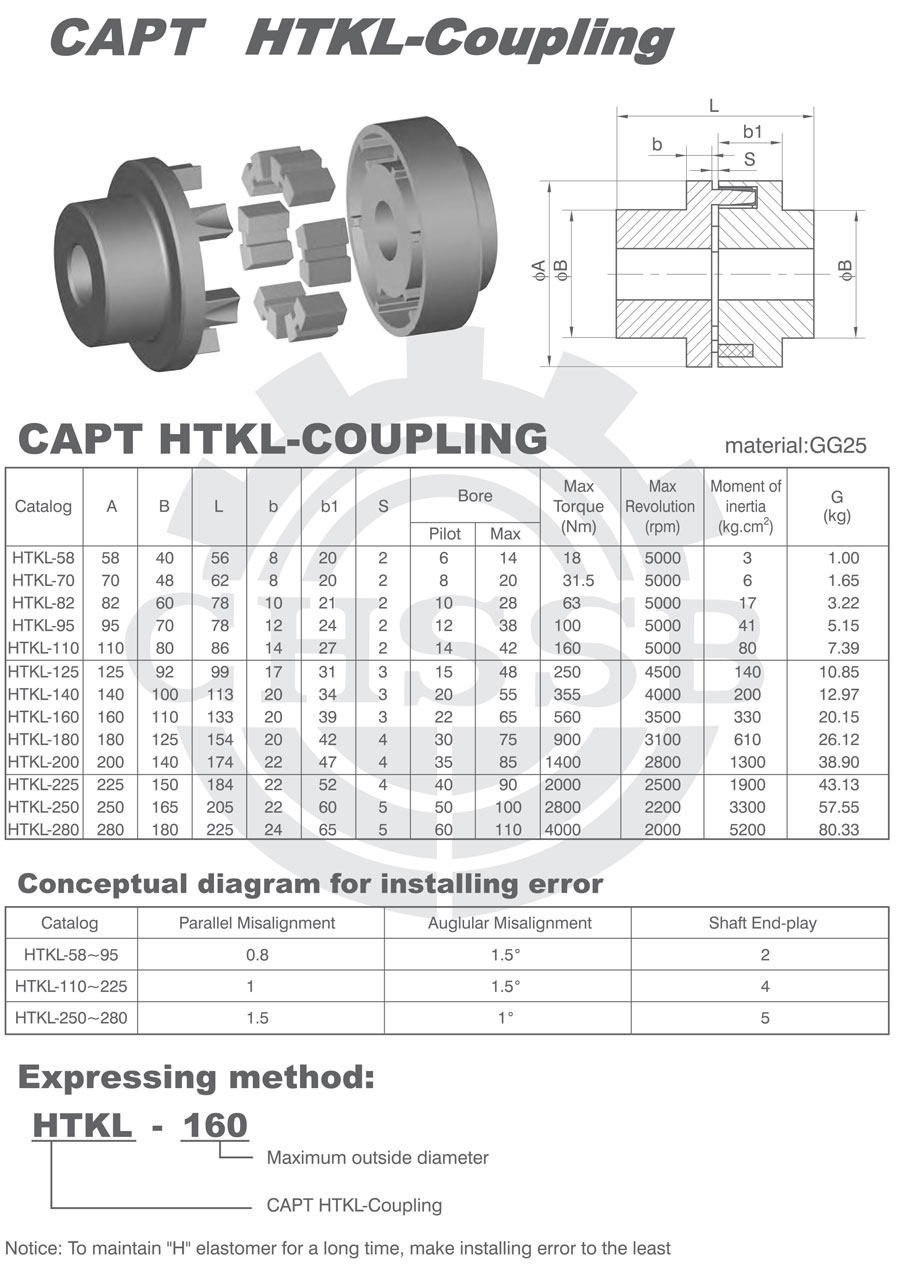 產(chǎn)品范圍: 歐標:(HTKL) 公制尺寸產(chǎn)品(適用于歐標市場) HTKL型聯(lián)軸器