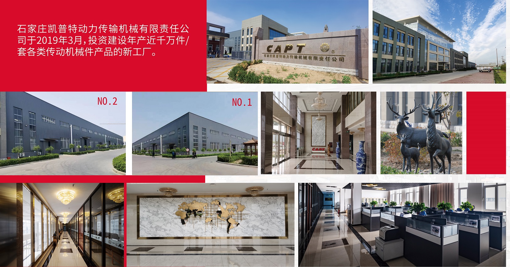 石家莊工廠 石家莊凱普特動力傳輸機械有限責任公司(簡稱石家莊CAPT)是集研發(fā)、生產(chǎn)及銷售為一體的綜合性傳動產(chǎn)品的專業(yè)生產(chǎn)廠。2021年公司完成了新廠區(qū)搬遷,全面建成并加強的生產(chǎn)、研發(fā)體系,涵蓋數(shù)控加工中心、信息化管理、熱加工及環(huán)保治理等,可為客戶持續(xù)提供快速、高質(zhì)、高效的動力傳動產(chǎn)品。