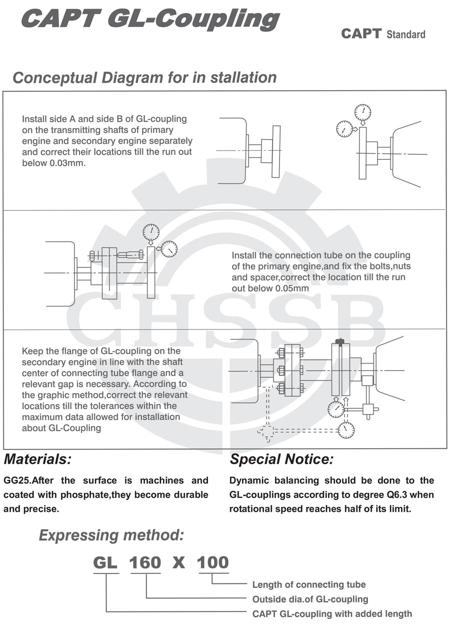 GL聯(lián)軸器工作時轉(zhuǎn)速超過他最大轉(zhuǎn)速的1/2,訂貨時必須特別聲明。